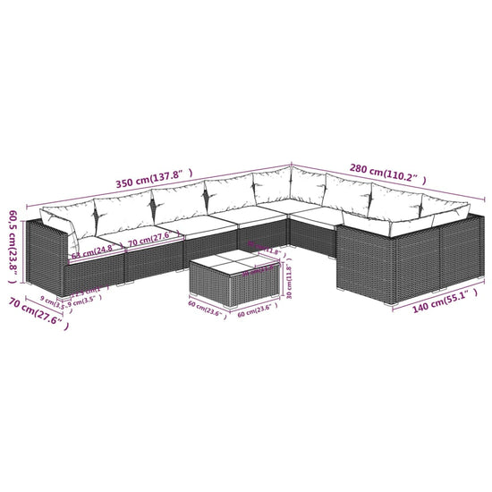 Ontspan en geniet met familie en vrienden in je buitenruimte op deze klassieke poly rattan loungeset met kussens!