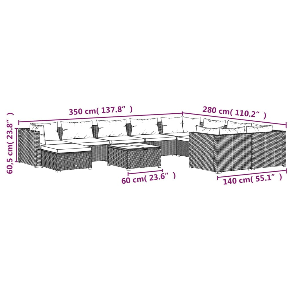 Ontspan en geniet met familie en vrienden in je buitenruimte op deze klassieke poly rattan loungeset met kussens!