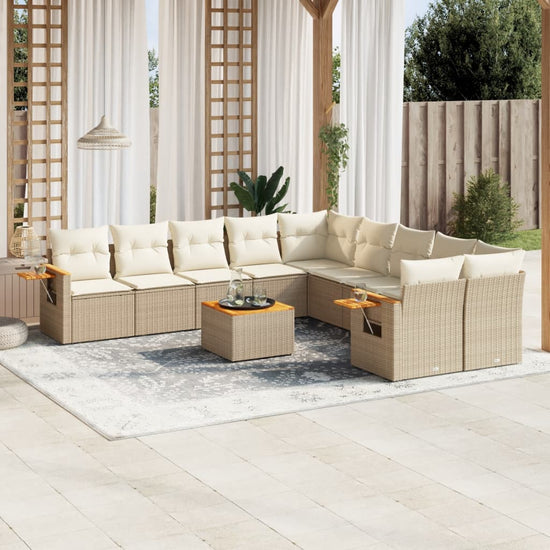 11-delige Tuinset met kussens poly rattan beige