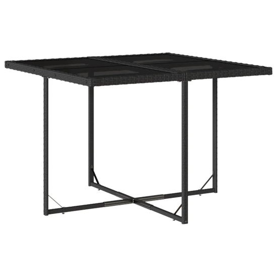 - Materiaal: PE-rattan, gepoedercoat staal en gehard glas