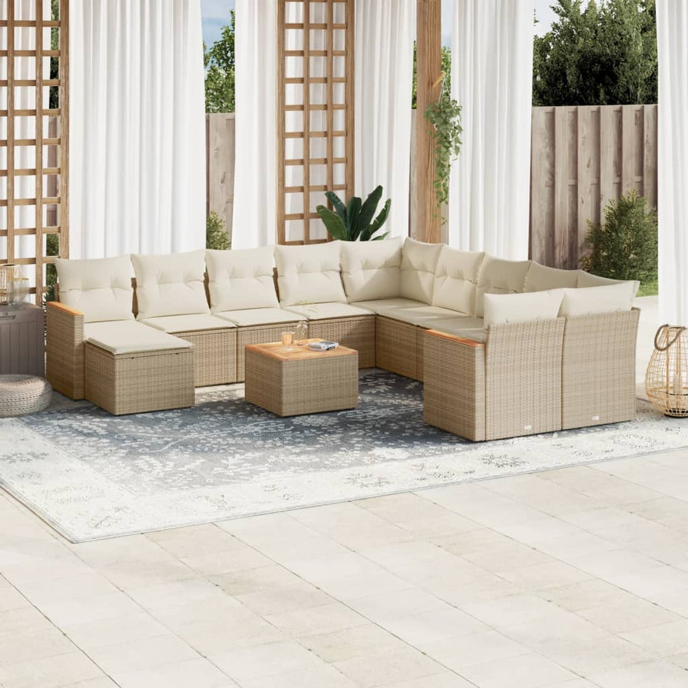 - Materiaal: PE-rattan, gepoedercoat staal en massief acaciahout met olieafwerking