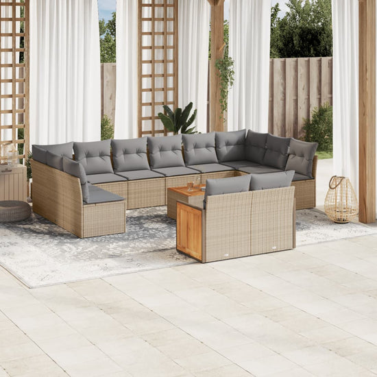 - Materiaal: PE-rattan, gepoedercoat staal en massief acaciahout met olieafwerking