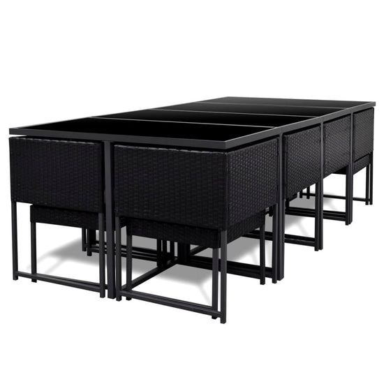 Deze rattan set is geschikt voor 12 personen, heeft een elegant, modern ontwerp en bestaat uit 1 tafel, 8 stoelen en 4 krukken. Deze rattan tuinmeubelset is een echte blikvanger in je tuin of patio!