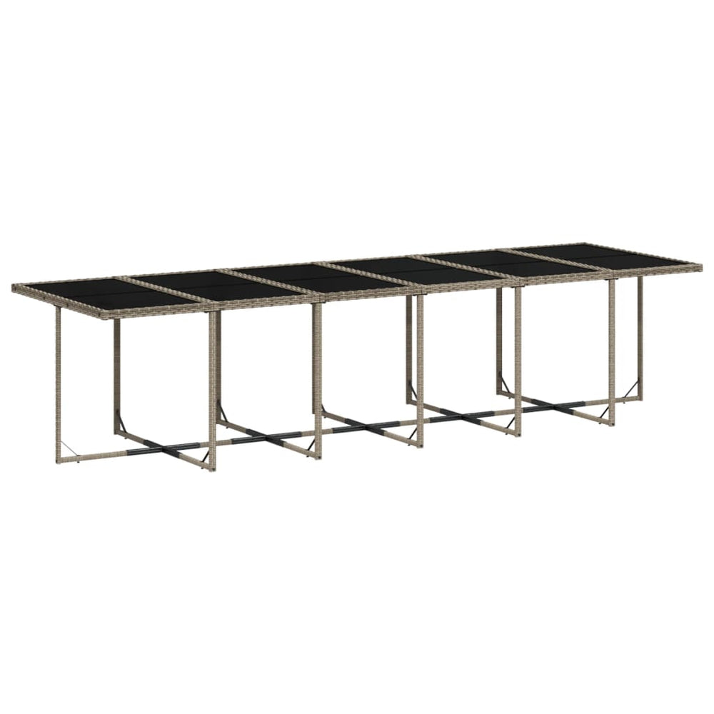 - Glazen tafelblad: het blad van de tuintafel is gemaakt van sterk en duurzaam gehard glas, waardoor het gemakkelijk schoon te maken is met een vochtige doek. Het voegt ook een vleugje elegantie toe aan je buitenruimte.