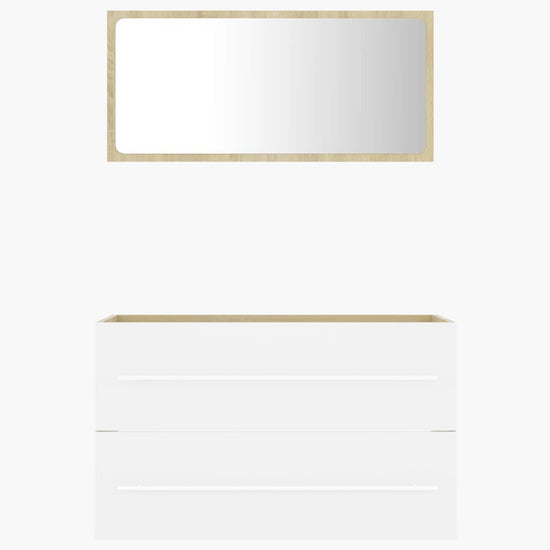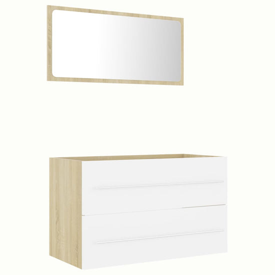 De meubelset, bestaande uit een spiegel en een kast, is gemaakt van duurzaam en stabiel spaanplaat. De chique kast is voorzien van 1 lade en biedt voldoende opbergruimte om spullen in je badkamer op te bergen. Het blad van de kast is ideaal voor het plaatsen van een wastafel. De spiegel geeft je interieur een prachtige uitstraling. Deze badkamerset is gemakkelijk schoon te maken met een vochtige doek.