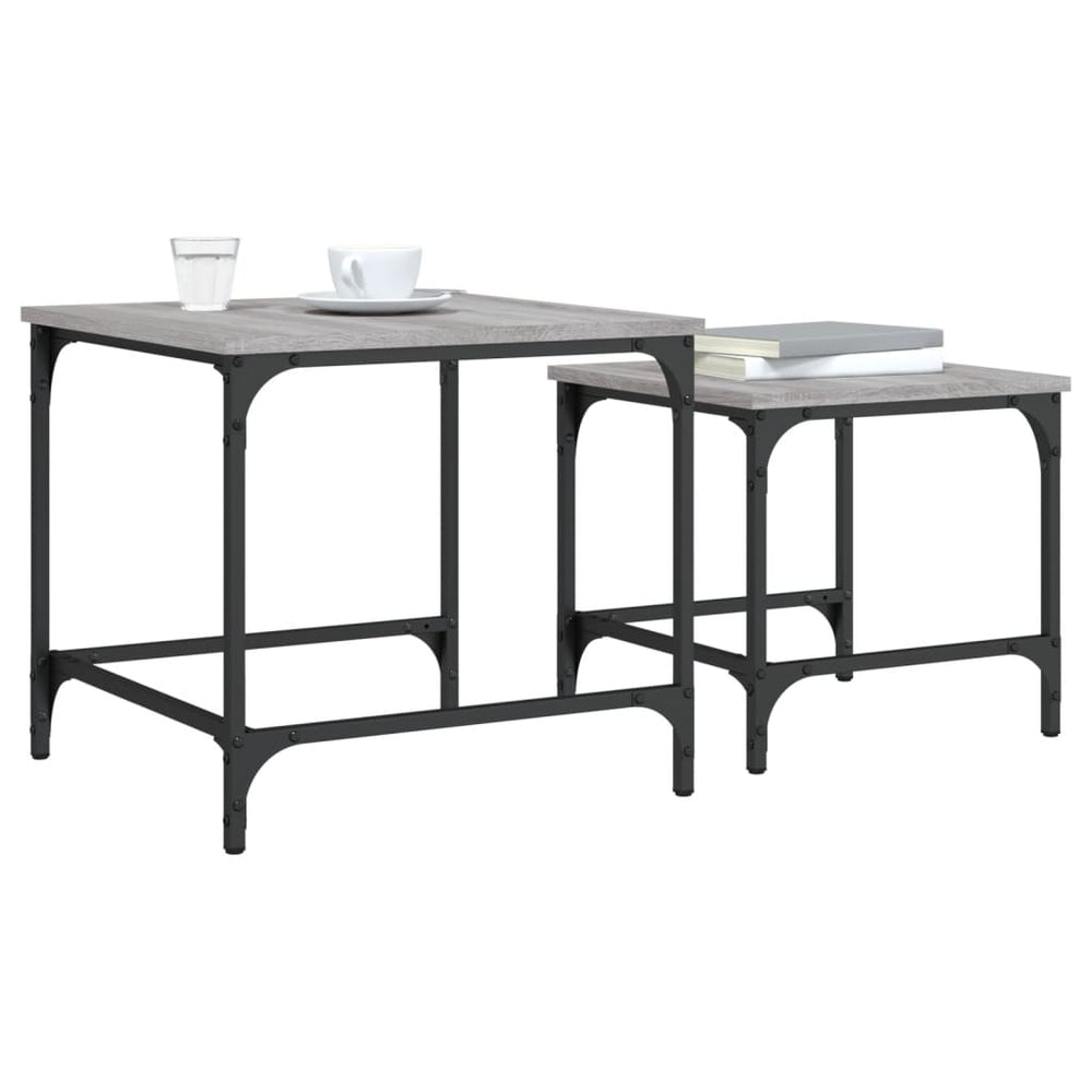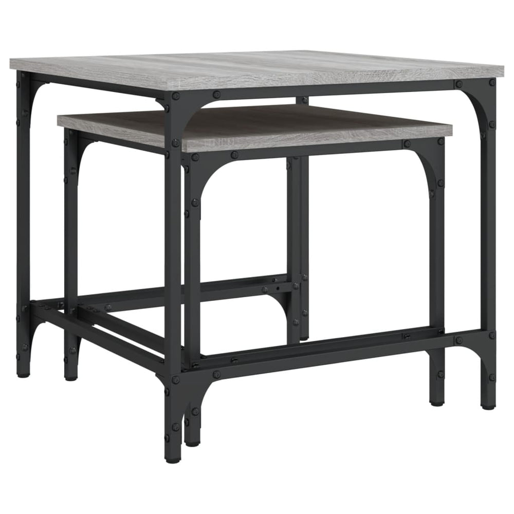 De 2 in elkaar passende salontafels zijn de perfecte oplossing voor kleine appartementen en elk gebied met beperkte ruimte. Dankzij het industriële ontwerp geeft deze salontafelset een chique tintje aan je woon- of slaapkamer of kantoor.