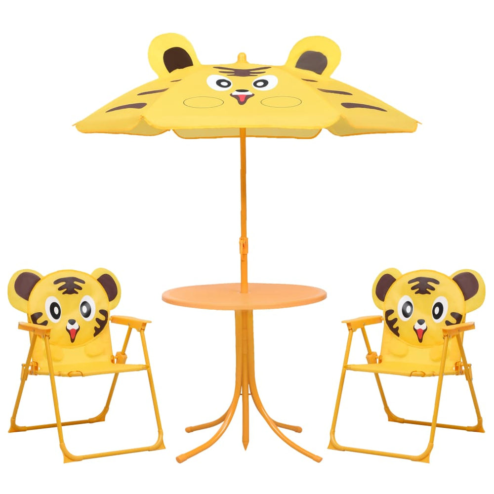 Het robuuste stalen frame maakt deze tuinset zeer sterk en robuust. Hij is een veilige zitplek voor je kinderen. De meegeleverde parasol beschermt je kleintjes tegen de zon. De stoelen zijn inklapbaar zodat je ze kan inklappen voor eenvoudig opbergen wanneer ze niet worden gebruikt.