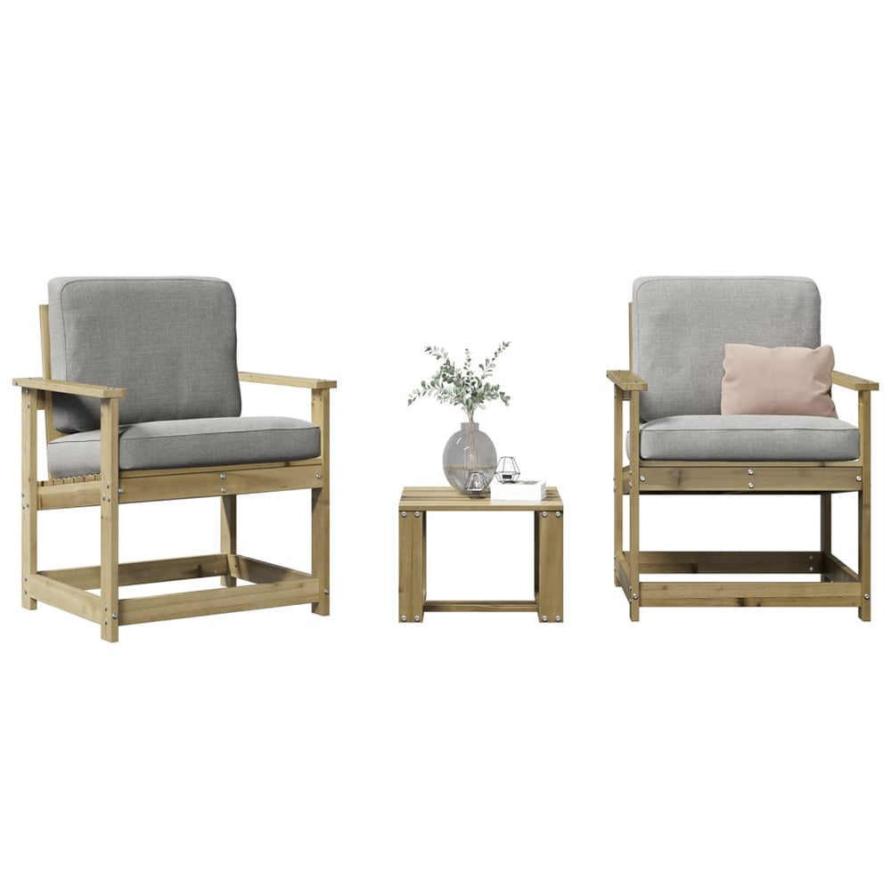 - Geïmpregneerd hout: de loungeset is gemaakt van massief grenenhout. Massief grenenhout is een prachtig, natuurlijk materiaal. Grenenhout heeft rechte nerven en de noesten geven het een kenmerkende, rustieke uitstraling. Impregneren is een conserveringsproces dat wordt uitgevoerd met behulp van autoclaven. De drukbehandeling verhoogt de weerstand tegen rotting en water.