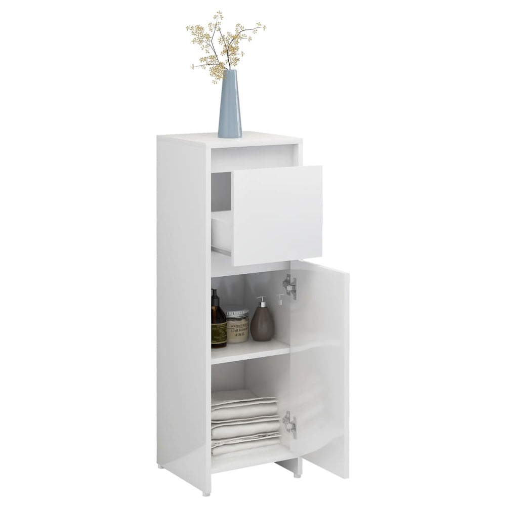 Deze set is gemaakt van hoogwaardig spaanplaat en is duurzaam en stabiel. De chique hoge kast heeft 6 vakken en 2 deuren en de medium kast heeft 2 vakken, 1 lade en 1 deur. Beide bieden veel ruimte om je badkamerspullen in op te bergen. De wastafelkast heeft 1 vak en 2 deuren en biedt voldoende ruimte om je toiletspullen, verzorgingsproducten en kleinere spullen in op te bergen. De set is ideaal om kammen, cosmetica, tandenborstels, tandpasta, enz. netjes georganiseerd en binnen handbereik te houden. De spiegel geeft je interieur een unieke uitstraling. Daarnaast is deze badkamerset gemakkelijk schoon te maken met een vochtige doek.
