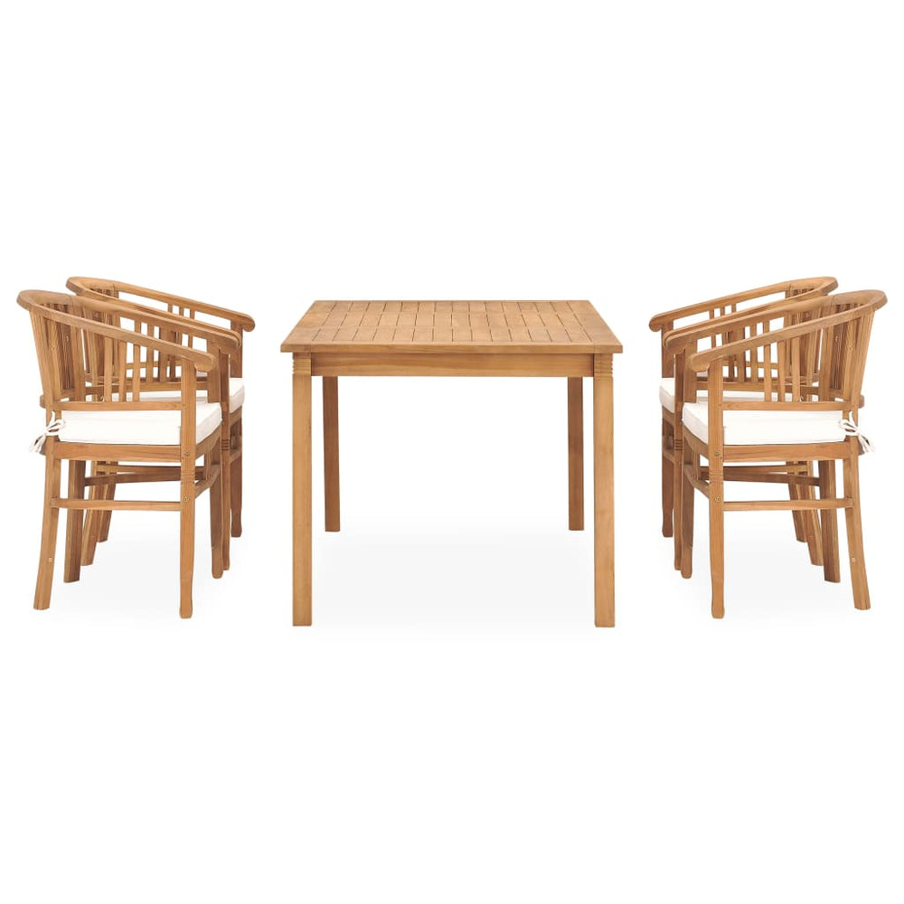 Deze massief teakhouten tuinmeubelset geeft je buitenruimte een vleugje elegantie en verfijning.