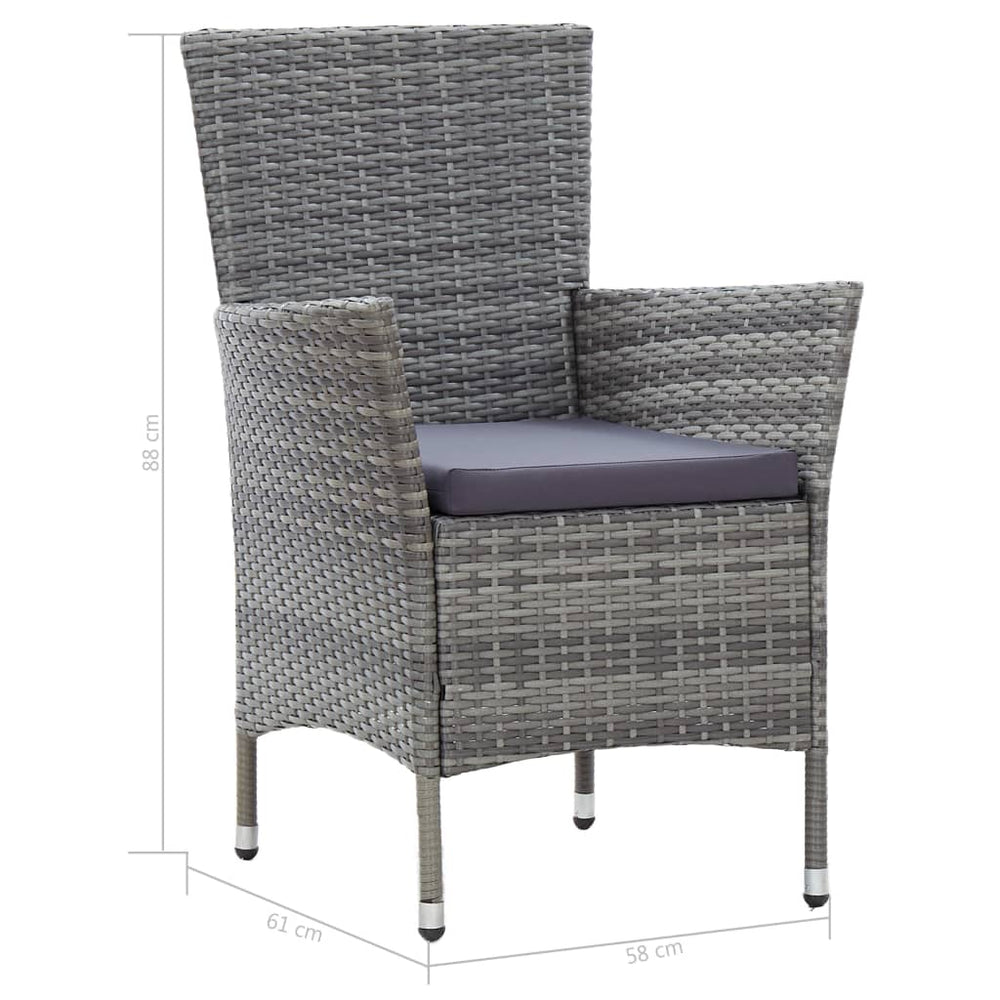 Dankzij de waterbestendige PE-rattan is de eetset gemakkelijk te reinigen, slijtvast en geschikt voor dagelijks buitengebruik. De gepoedercoat stalen frames zorgen voor stabiliteit en garanderen een uitstekende duurzaamheid. De levering bevat een eettafel met massief acaciahouten blad die bij onze elegante stoelen past. De dik gevoerde, afneembare kussens met schuimvulling bieden het ultieme zitcomfort. De onderhoudsarme polyester kussenhoezen kunnen eenvoudig verwijderd en gewassen worden. Deze tuinset is eenvoudig te monteren.