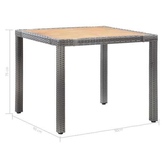 - Materiaal: PE-rattan, massief acaciahout en gepoedercoat staal