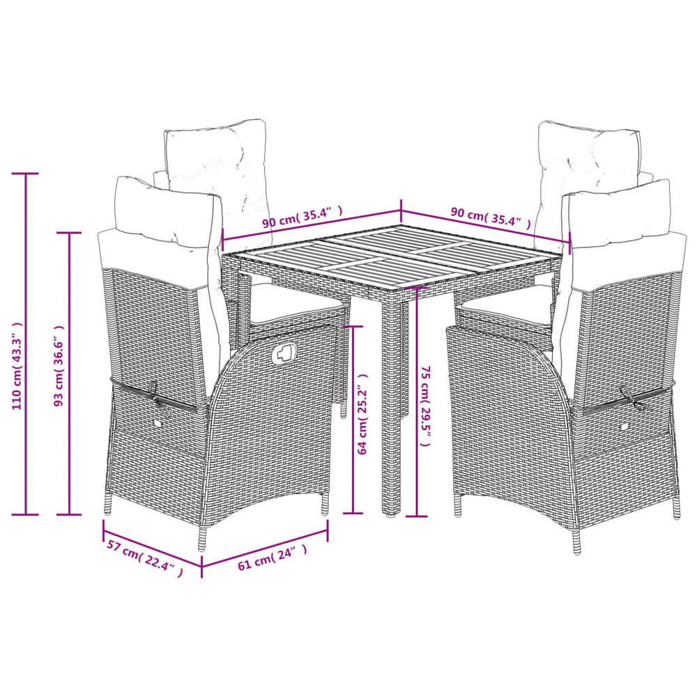 - Materiaal: PE-rattan, gepoedercoat staal en massief acaciahout met olieafwerking