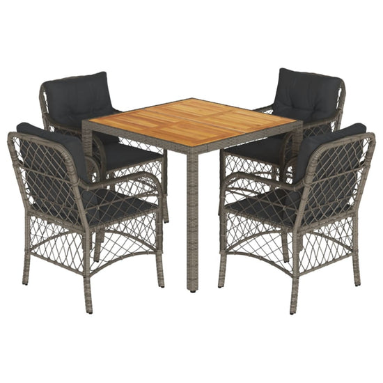 - Materiaal: PE-rattan, gepoedercoat staal en massief acaciahout met een olieafwerking
