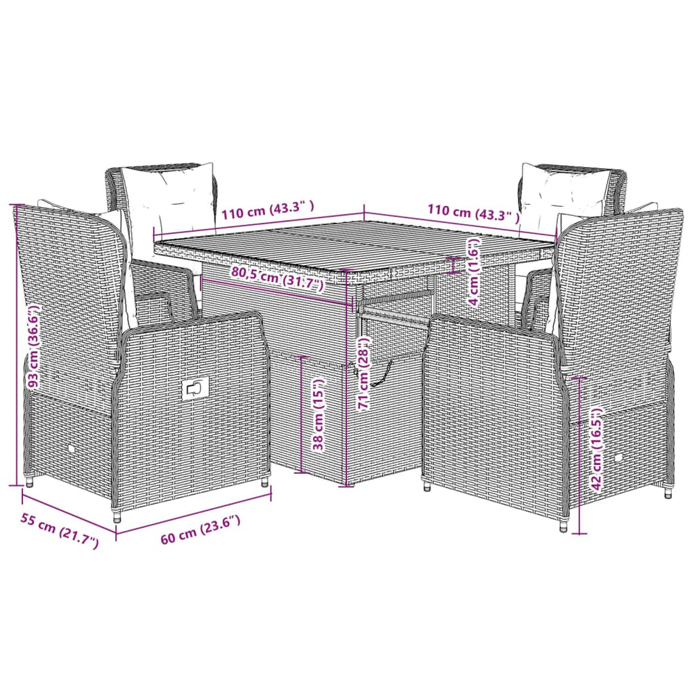 - Afmetingen: 110 x 110 x 40/71 cm (L x B x H)