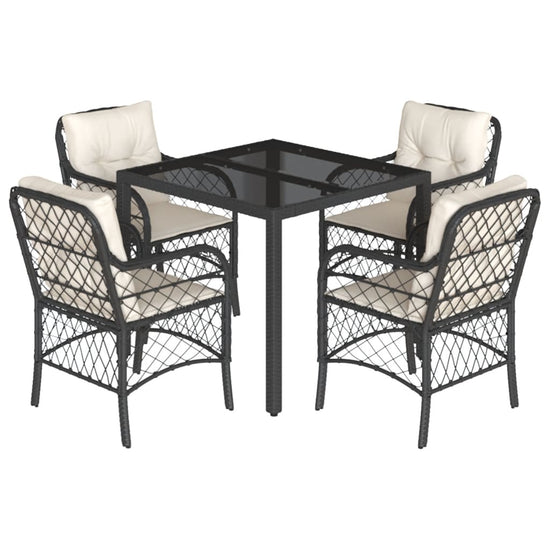 - Materiaal: PE-rattan, gepoedercoat staal en gehard glas