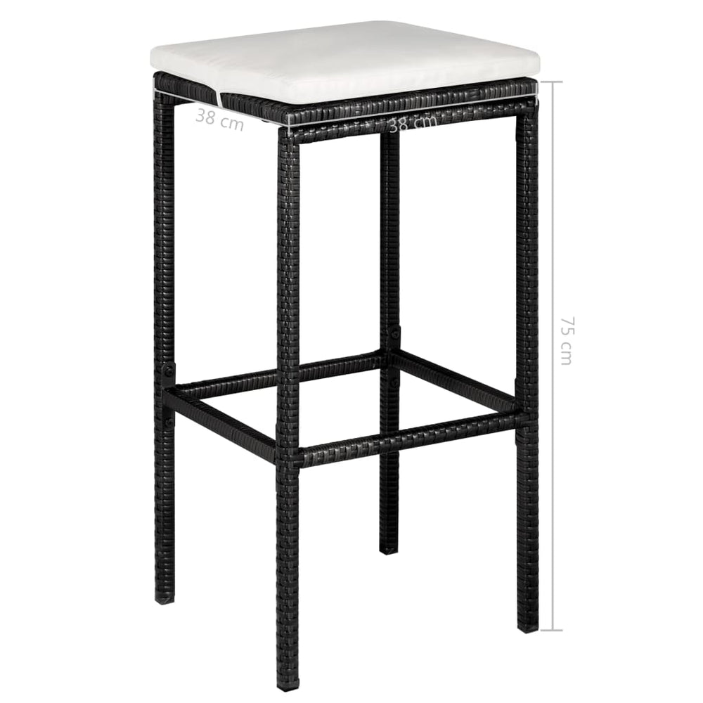 Dankzij de waterbestendige PE rattan is de tuinbarset gemakkelijk schoon te maken, slijtvast en geschikt voor dagelijks buitengebruik. De levering bevat een chique bartafel die bij de elegante krukken past. De tafel is ontworpen met genoeg opbergruimte om je belangrijke spullen geordend en binnen handbereik te houden. Het stalen frame maakt de meubelset stevig en stabiel, maar omdat de constructie ook lichtgewicht is, zijn alle onderdelen eenvoudig te verplaatsen. Deze tuinset wordt ook geleverd met zeer comfortabele, dik gevulde zitkussens voor het ultieme comfort. De onderhoudsarme polyester hoezen kunnen verwijderd en gewassen worden. Deze poly rattan set kan eenvoudig verplaatst worden, zodat je overal waar je wilt, kunt zitten. Deze set is gemakkelijk te monteren.