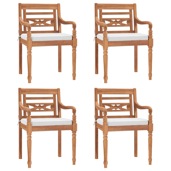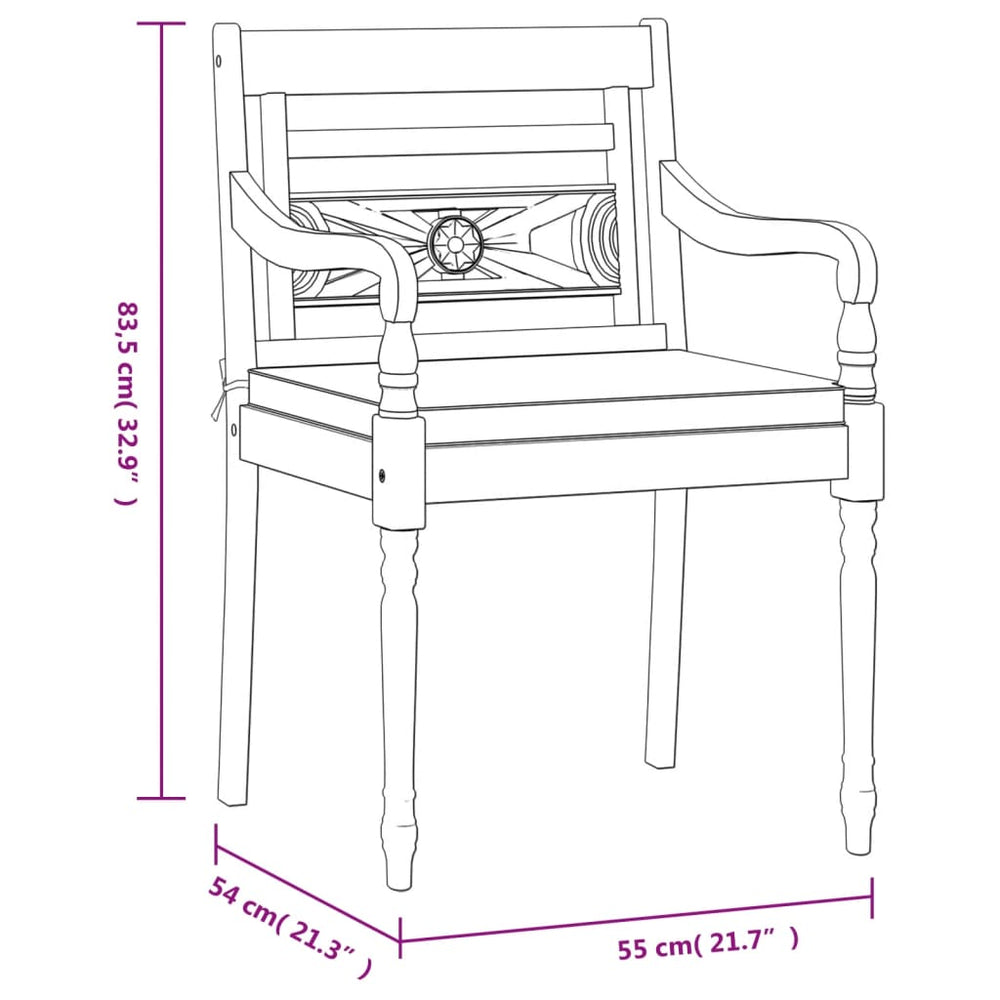 Geniet van een kopje thee of een heerlijk diner in je tuin met deze houten Batavia tuinset!Met delicate, gebogen armleuningen en decoratief houtsnijwerk wordt deze tuinmeubelset het middelpunt van je tuin en terras!