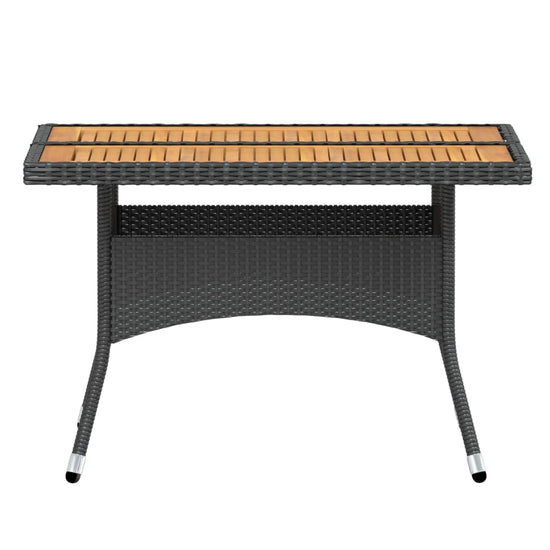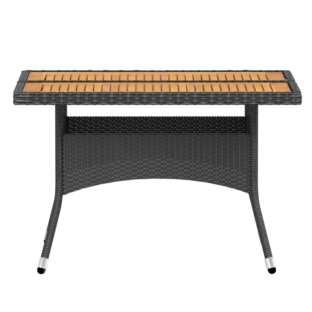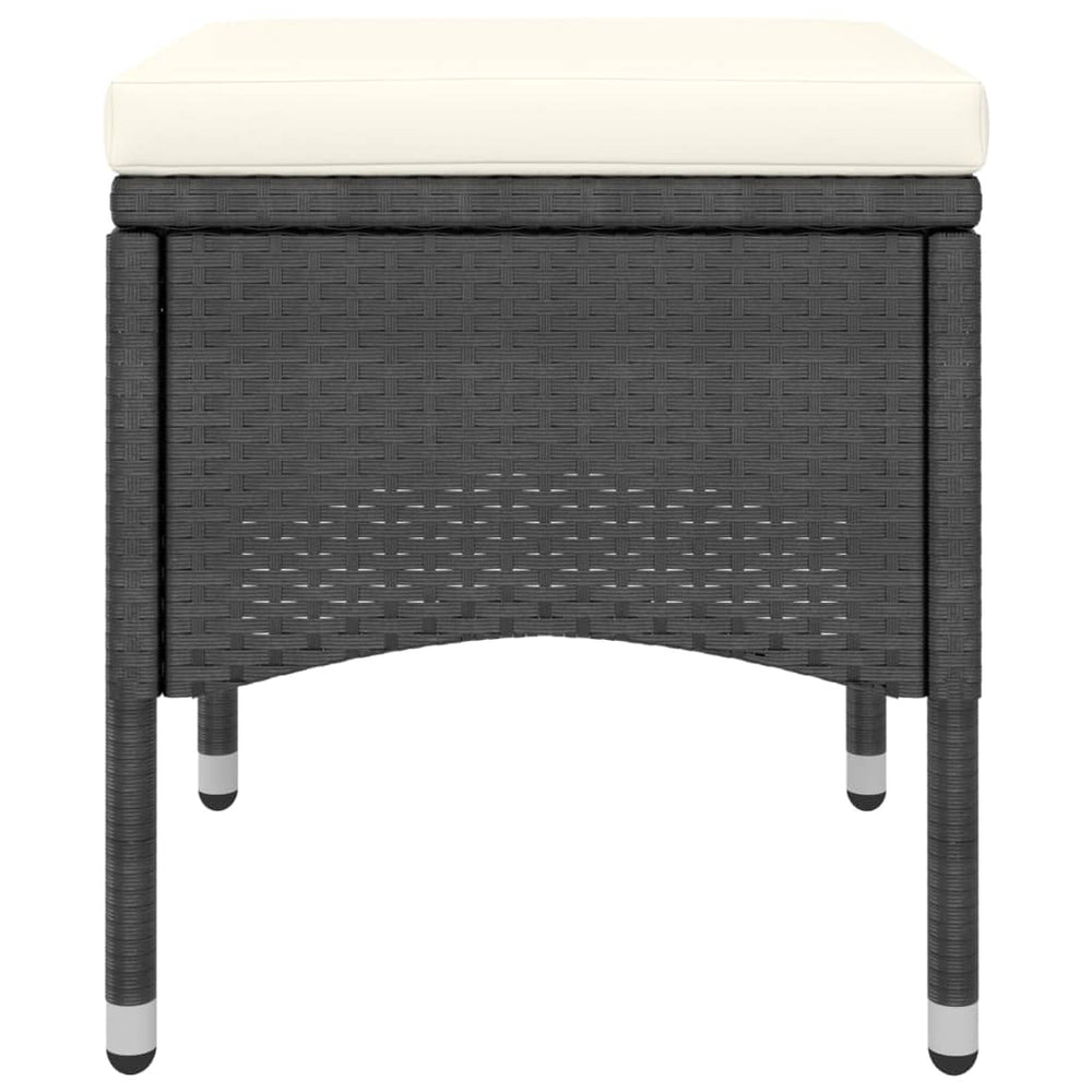 De tafel en stoelen hebben een gepoedercoat stalen frame dat bedekt is met weerbestendig PE-rattan met uv-bescherming waardoor ze duurzaam en stabiel zijn. De stoelen zijn ontworpen met gebogen rug- en armleuningen die veel comfort bieden. De inbegrepen kussens bieden extra comfort en de hoes met rits is afneembaar voor gemakkelijk wassen. Het tafelblad is gemaakt van massief acaciahout waardoor het eenvoudig schoon te maken en te onderhouden is. De 2 voetenbankjes zijn ook te gebruiken als extra zitjes. Bovendien maakt de lichtgewicht constructie elk meubel gemakkelijk te verplaatsen.
