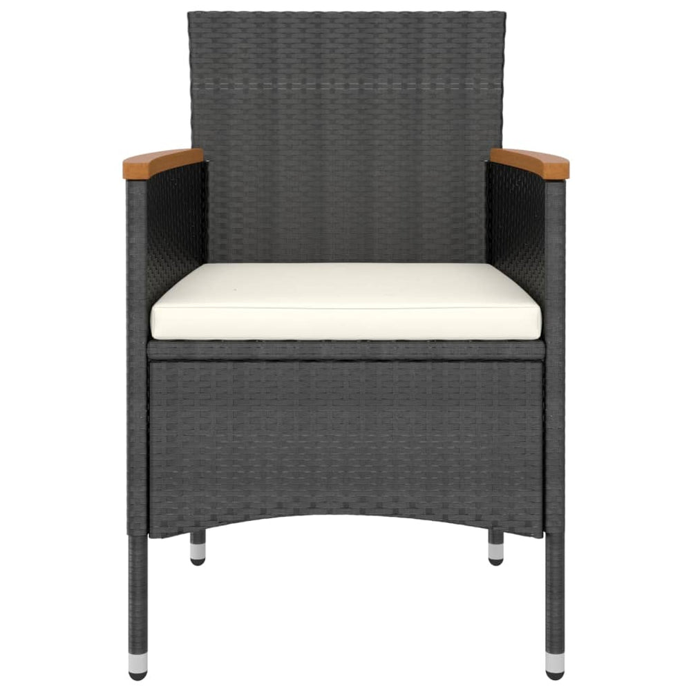 De tafel en stoelen hebben een gepoedercoat stalen frame dat bedekt is met weerbestendig PE-rattan met uv-bescherming waardoor ze duurzaam en stabiel zijn. De stoelen zijn ontworpen met gebogen rug- en armleuningen die veel comfort bieden. De inbegrepen kussens bieden extra comfort en de hoes met rits is afneembaar voor gemakkelijk wassen. Het tafelblad is gemaakt van massief acaciahout waardoor het eenvoudig schoon te maken en te onderhouden is. De 2 voetenbankjes zijn ook te gebruiken als extra zitjes. Bovendien maakt de lichtgewicht constructie elk meubel gemakkelijk te verplaatsen.