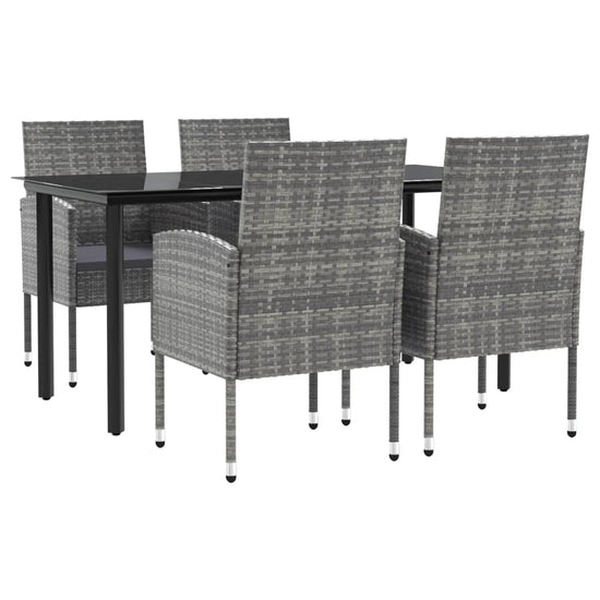 5-delige Tuinset poly rattan en staal grijs en zwart