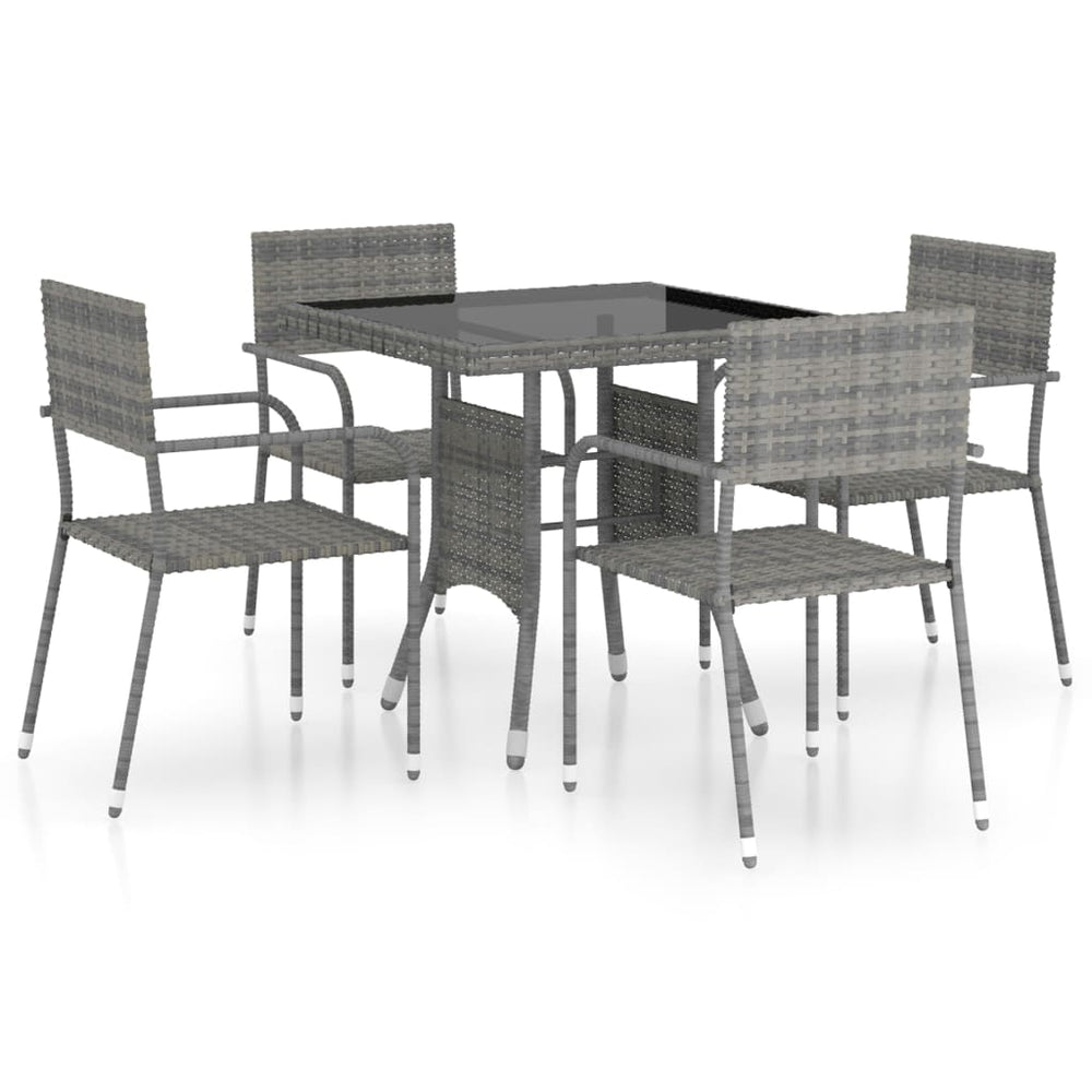 De eettafel en stoelen zijn gemaakt van onderhoudsvrij PE-rattan, waardoor ze gemakkelijk schoon te maken zijn met een vochtige doek en perfect zijn voor buitengebruik. Dankzij hun stalen frames zijn de tafel en stoelen zeer stabiel en stevig. Het glazen tafelblad geeft je buitenruimte een luxe tintje. Bovendien zijn de stoelen lichtgewicht en stapelbaar, voor ruimtebesparende opslag.