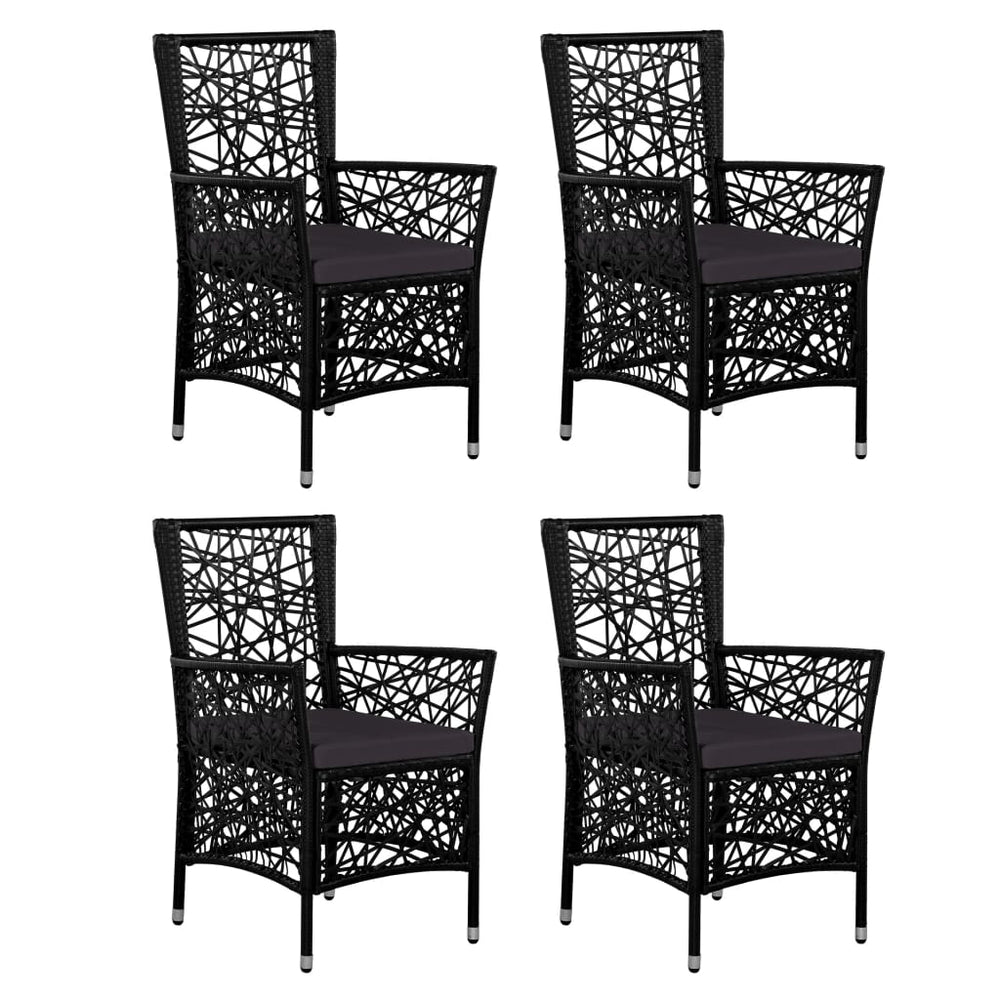 - Levering bevat 1 tafel en 4 stoelen (inclusief 4 zitkussens)