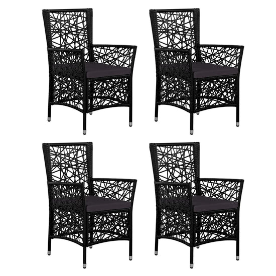 Dankzij de waterbestendige PE rattan zijn de tuintafel en -stoelen duurzaam, gemakkelijk te onderhouden en geschikt voor dagelijks buitengebruik. De stalen frames maken de tafel en stoelen stevig en stabiel. De tafel heeft een gehard glazen blad en de eetkamerstoelen hebben een uniek open weefpatroon. Elke stoel wordt geleverd met een comfortabel, verwijderbaar kussen.