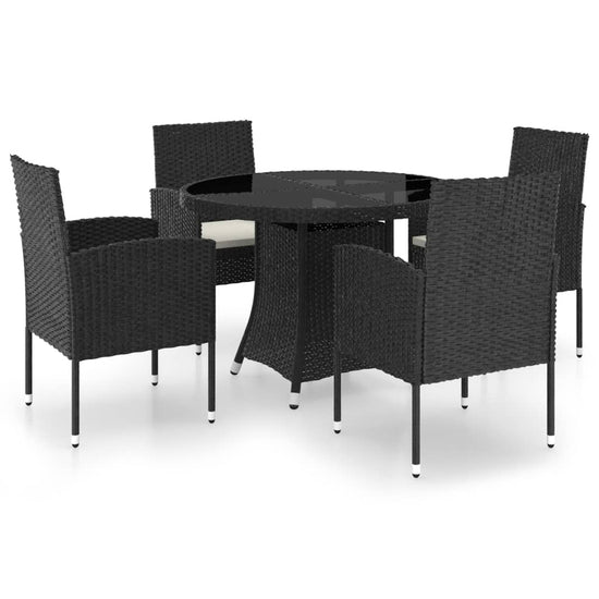 De eettafel en stoelen zijn gemaakt van onderhoudsvrij PE-rattan, waardoor ze gemakkelijk schoon te maken zijn met een vochtige doek en perfect zijn voor buitengebruik. Dankzij hun stalen frames zijn de tafel en stoelen zeer stabiel en stevig. Het glazen tafelblad geeft je buitenruimte een luxe tintje. Bovendien zijn de dikke, afneembare zitkussens zeer comfortabel.