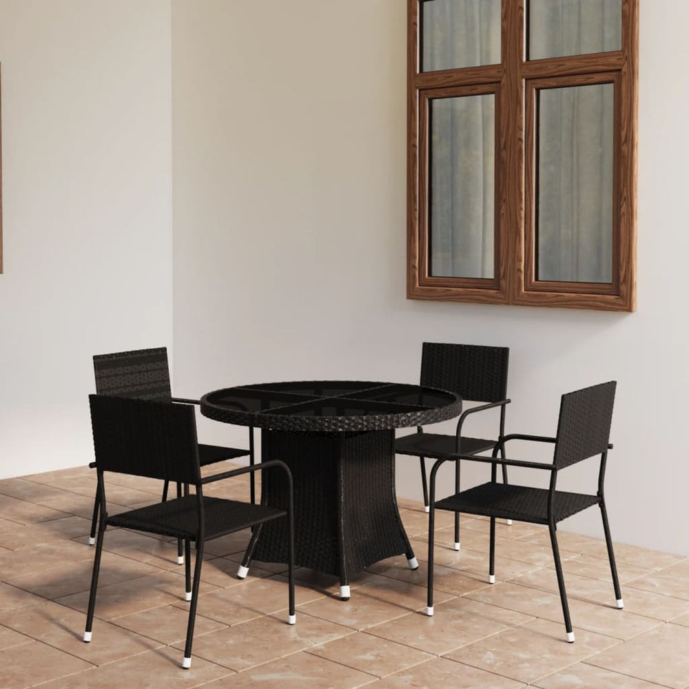 De eettafel en stoelen zijn gemaakt van onderhoudsvrij PE-rattan, waardoor ze gemakkelijk schoon te maken zijn met een vochtige doek en perfect zijn voor buitengebruik. Dankzij hun stalen frames zijn de tafel en stoelen zeer stabiel en stevig. Het glazen tafelblad geeft je buitenruimte een luxe tintje. Bovendien zijn de stoelen lichtgewicht en stapelbaar, voor ruimtebesparende opslag.