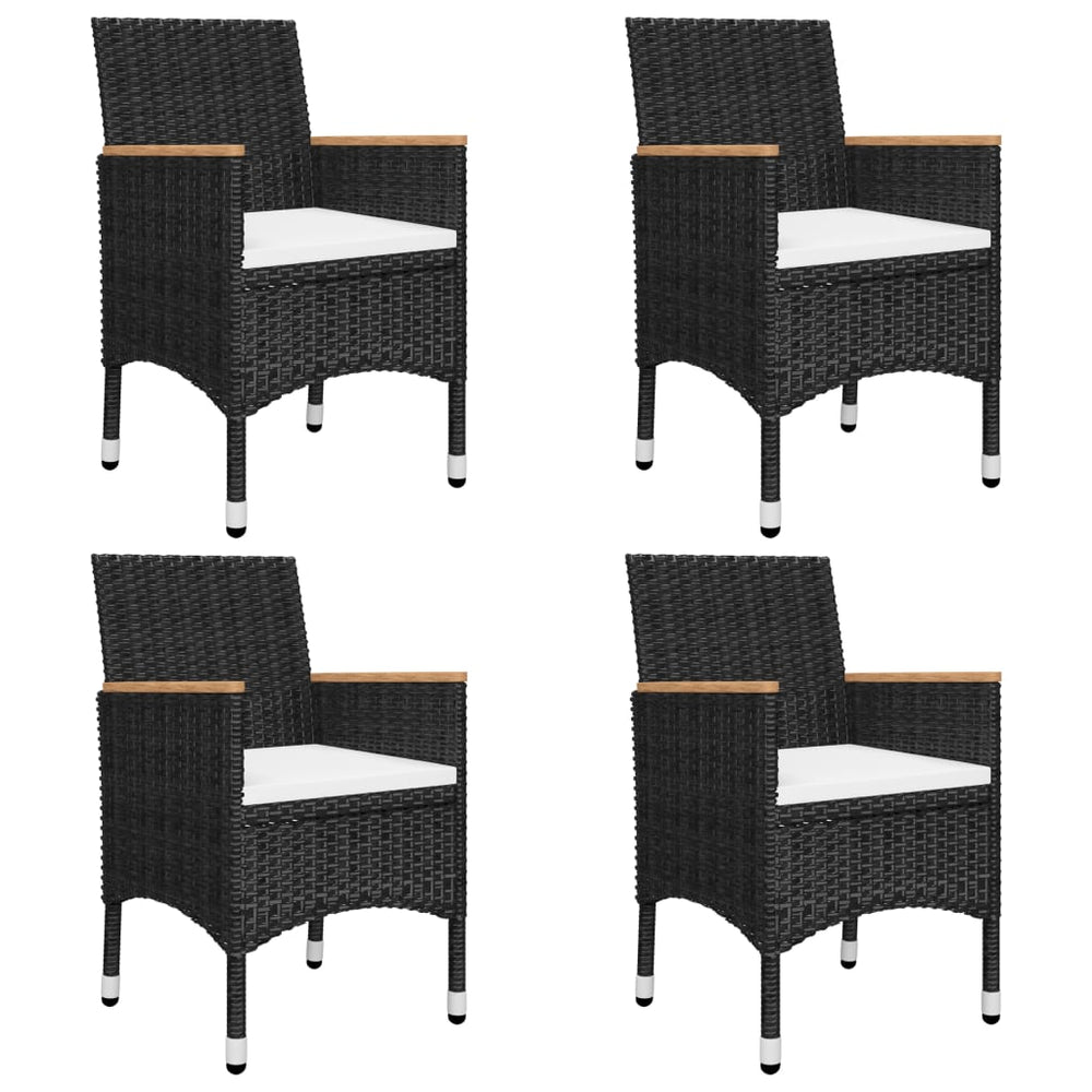 De eettafel is gemaakt van massief acaciahout met een olieafwerking, waardoor hij stabiel, duurzaam en gemakkelijk te onderhouden is. De eetstoelen hebben een gepoedercoat stalen frame bedekt met weerbestendig PE-rattan waardoor ze stevig en gemakkelijk schoon te maken zijn. Elke stoel is ontworpen met gebogen rug- en armleuningen voor een meer ergonomische vorm. De armleuningen zijn prachtig gedecoreerd met massief acaciahout met een natuurlijke olieafwerking voor een rustieke charme. De dik gevoerde kussens bieden ultiem zitcomfort.