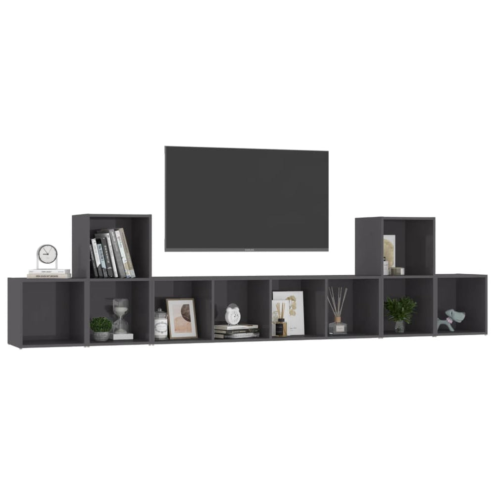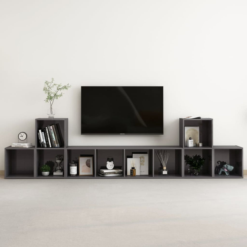 Deze televisiemeubelset biedt voldoende ruimte om tijdschriften, boeken, dvd's en multimedia-apparaten overzichtelijk en binnen handbereik op te bergen. Elk meubel kan horizontaal of verticaal worden geplaatst, waardoor het een perfecte aanvulling op je interieur is. Deze hifi-kastenset is eenvoudig schoon te maken met een vochtige doek.