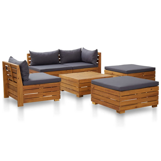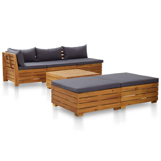 De houten loungeset heeft een tijdloos lattenpatroon en geeft een vleugje rustieke charme aan je terras, tuin of woonkamer. De tuinset is gemaakt van massief acaciahout en is weerbestendig en zeer duurzaam. Gecombineerd met de meegeleverde, zachte en dik gevoerde kussens biedt onze loungeset het hoogste comfort. De tafel is ideaal om eten en drinken binnen handbereik te houden. De tuinmeubelset is eenvoudig te monteren.