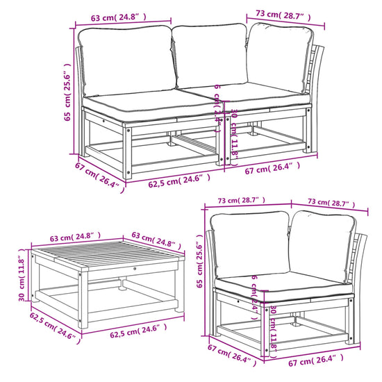 Deze houten loungeset met kussens heeft een elegant ontwerp en is een geweldige keuze om op te ontspannen en te genieten in de tuin of op het terras.