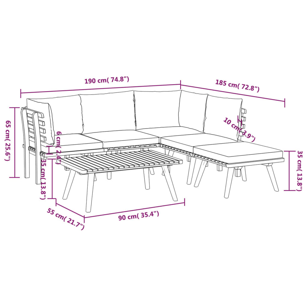 Deze tuinmeubelset is gemaakt van massief acaciahout waardoor hij weerbestendig en zeer duurzaam is. In combinatie met de dik gevoerde kussens biedt deze tuinloungeset optimaal comfort. Je kunt hem combineren met andere modulaire segmenten om zo je eigen persoonlijke loungeset samen te stellen!