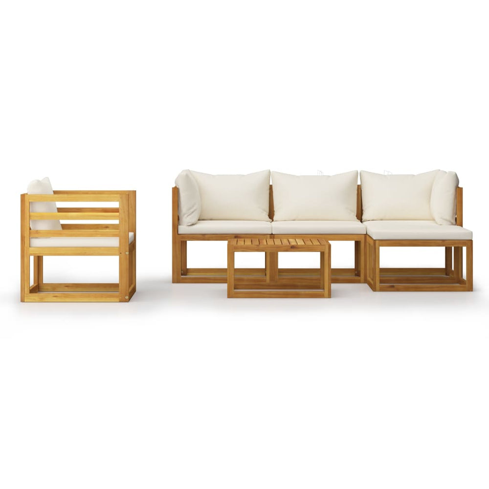 Het bankstel heeft een massief acaciahouten frame waardoor de set sterk, stevig en duurzaam is; de olieafwerking maakt de set geschikt voor gebruik buiten. De afneembare zit- en rugkussens zijn dik gevoerd, voor een geweldig zitcomfort. Een salontafel met een uniek gelat ontwerp is ook inbegrepen. Bovendien vallen alle onderdelen op dankzij het modulaire ontwerp waardoor ze naar wens geplaatst kunnen worden.