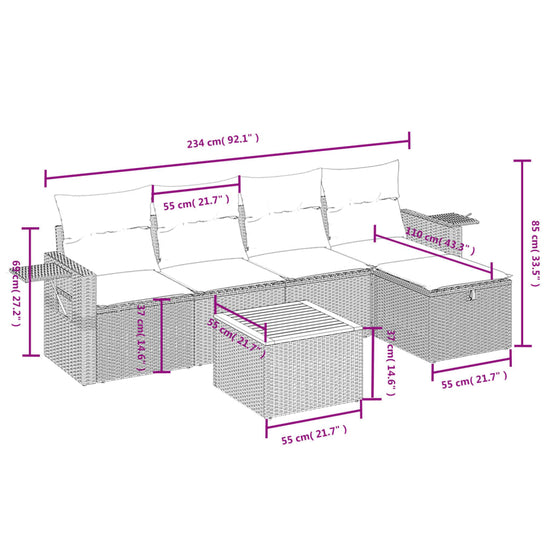 6-delige Loungeset met kussens poly rattan beige6-delige Loungeset met kussens poly rattan beige6-delige Loungeset met kussens poly rattan beige