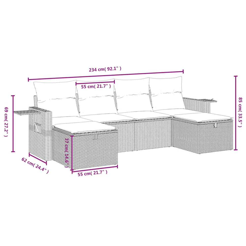 6-delige Loungeset met kussens poly rattan gemengd beige6-delige Loungeset met kussens poly rattan gemengd beige6-delige Loungeset met kussens poly rattan gemengd beige