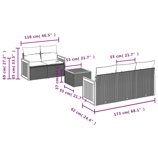 - Materiaal: PE-rattan, gepoedercoat staal en massief acaciahout met olieafwerking