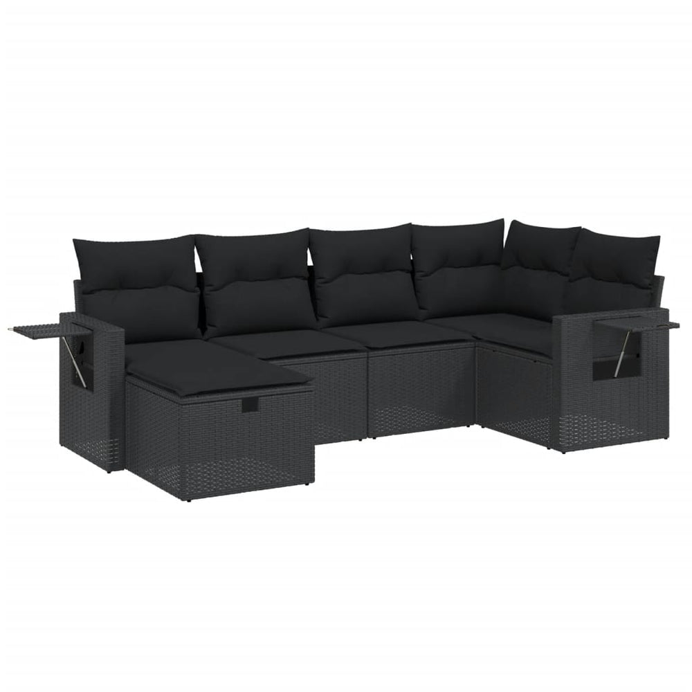 6-delige Loungeset met kussens poly rattan zwart6-delige Loungeset met kussens poly rattan zwart6-delige Loungeset met kussens poly rattan zwart