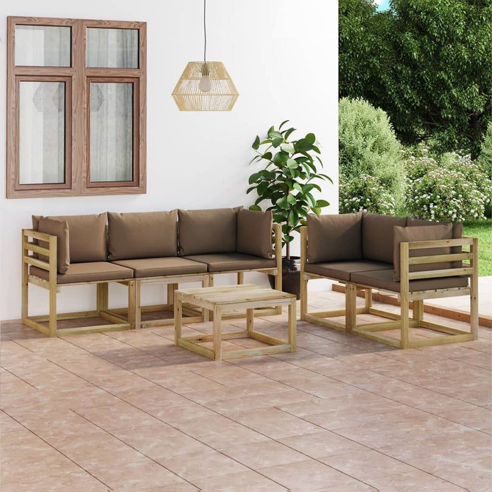 De loungeset is gemaakt van geïmpregneerd grenenhout waardoor hij duurzaam en weerbestendig is. Deze meubelset heeft een stevige constructie en is onderhoudsarm. Dankzij de 100% polyester bekleding en dikke voering zijn de inbegrepen kussens zacht en comfortabel.