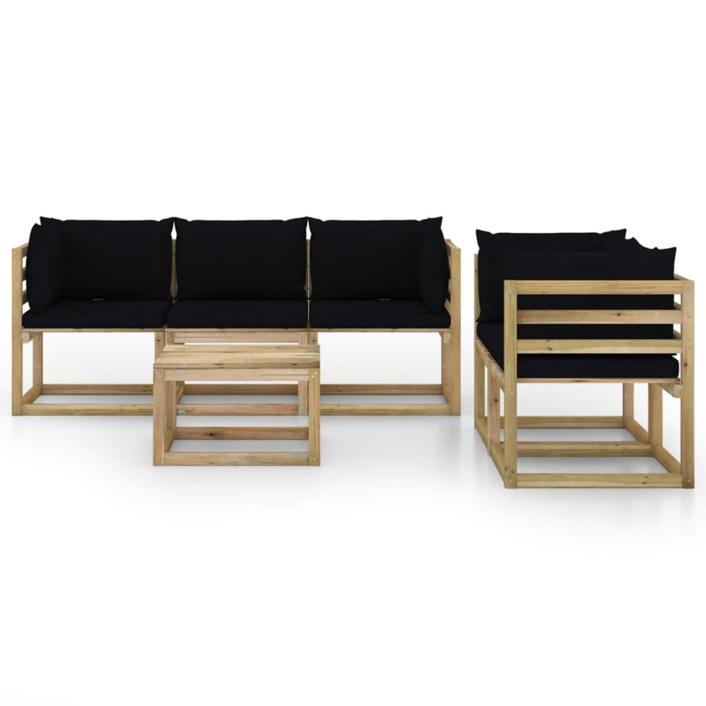 De loungeset is gemaakt van geïmpregneerd grenenhout waardoor hij duurzaam en weerbestendig is. Deze meubelset heeft een stevige constructie en is onderhoudsarm. Dankzij de 100% polyester bekleding en dikke voering zijn de inbegrepen kussens zacht en comfortabel.