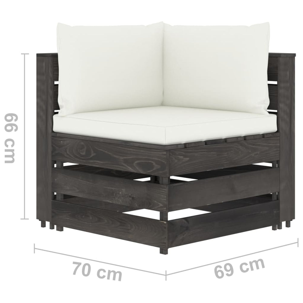 De pallet loungeset is gemaakt van geïmpregneerd grenenhout, waardoor hij duurzaam en weerbestendig is. Deze tuinset heeft een massieve constructie en vergt weinig onderhoud. Dankzij de dik gevoerde kussens biedt deze meubelset het hoogste comfort. Verder maakt het modulaire design het mogelijk om de set in elke gewenste opstelling te plaatsen.
