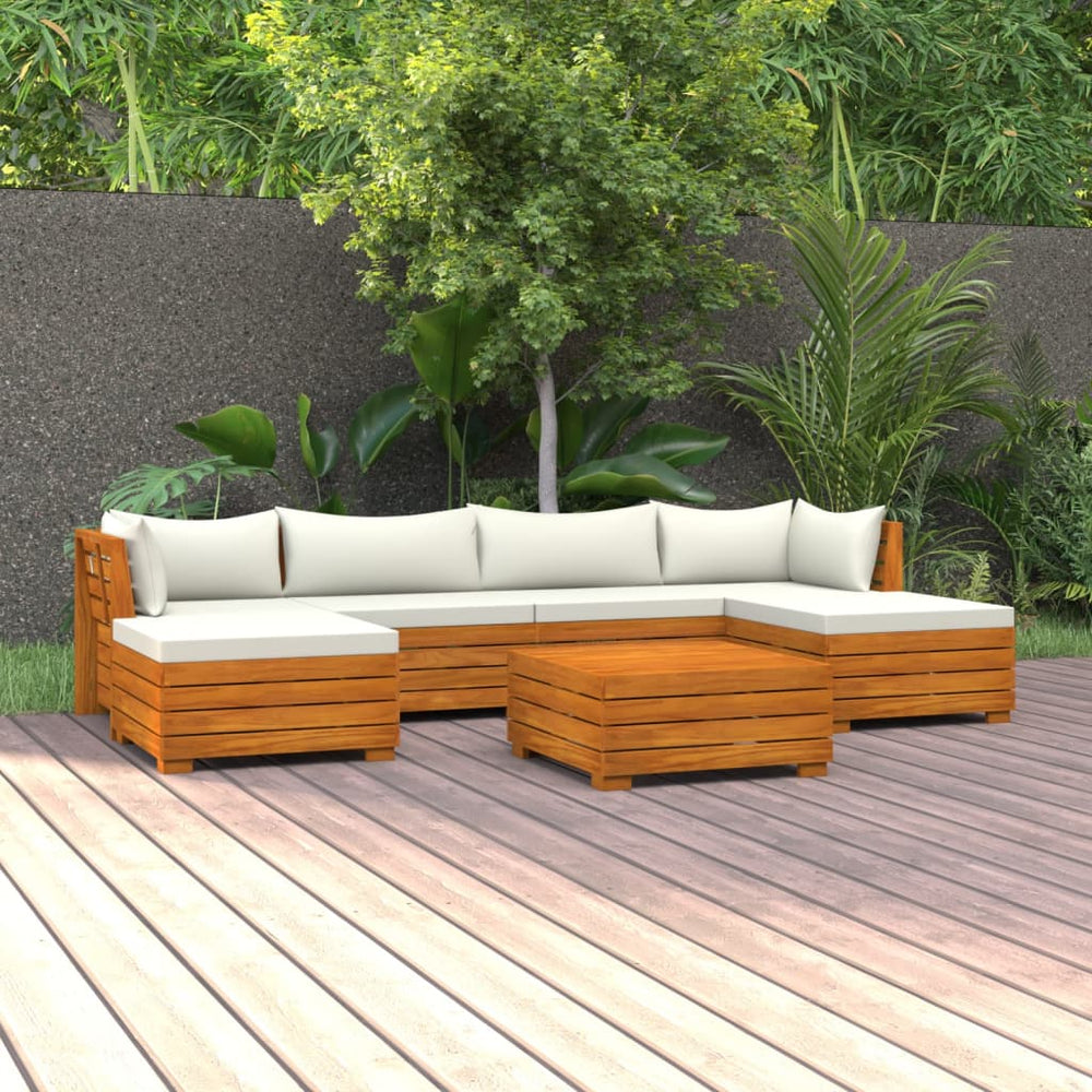 Deze tuinmeubelset is gemaakt van massief acaciahout waardoor hij weerbestendig en zeer duurzaam is. In combinatie met de dik gevoerde kussens biedt deze loungeset optimaal comfort. Je kunt hem combineren met andere modulaire segmenten om zo je eigen persoonlijke loungeset samen te stellen!