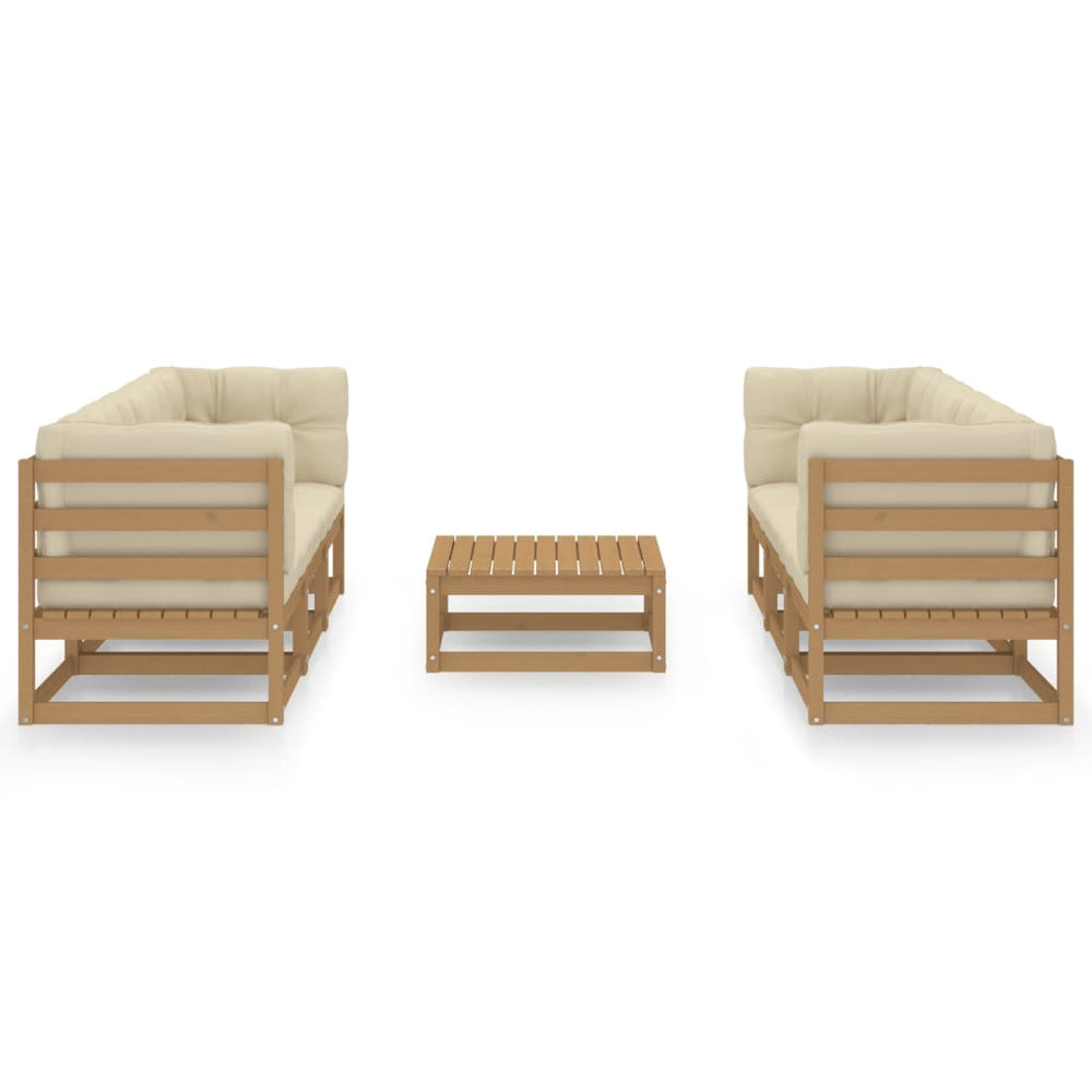 De set is gemaakt van massief grenenhout, waardoor hij stevig en stabiel is. De kussens bieden extra comfort. Je kunt hem combineren met andere modulaire segmenten om zo je eigen persoonlijke loungeset samen te stellen!