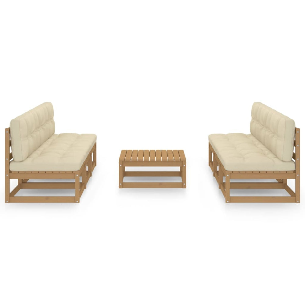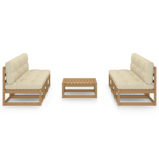 De set is gemaakt van massief grenenhout, waardoor hij stevig en stabiel is. De kussens bieden extra comfort. Je kunt hem combineren met andere modulaire segmenten om zo je eigen persoonlijke loungeset samen te stellen!