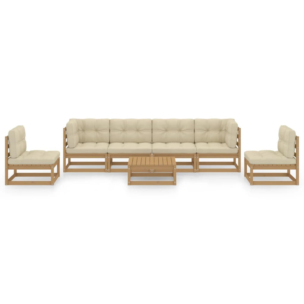 De set is gemaakt van massief grenenhout, waardoor hij stevig en stabiel is. De kussens bieden extra comfort. Je kunt hem combineren met andere modulaire segmenten om zo je eigen persoonlijke loungeset samen te stellen!