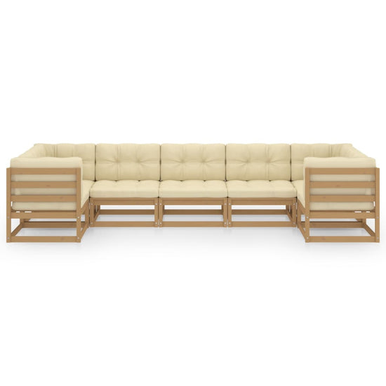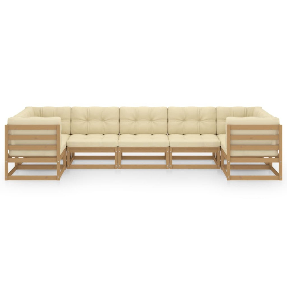 De loungeset is gemaakt van massief grenenhout, waardoor hij stevig en stabiel is. Deze set heeft een massieve constructie en vergt weinig onderhoud. De kussens zorgen voor extra comfort. De meubelset geeft je buitenruimte een vleugje rustieke charme.