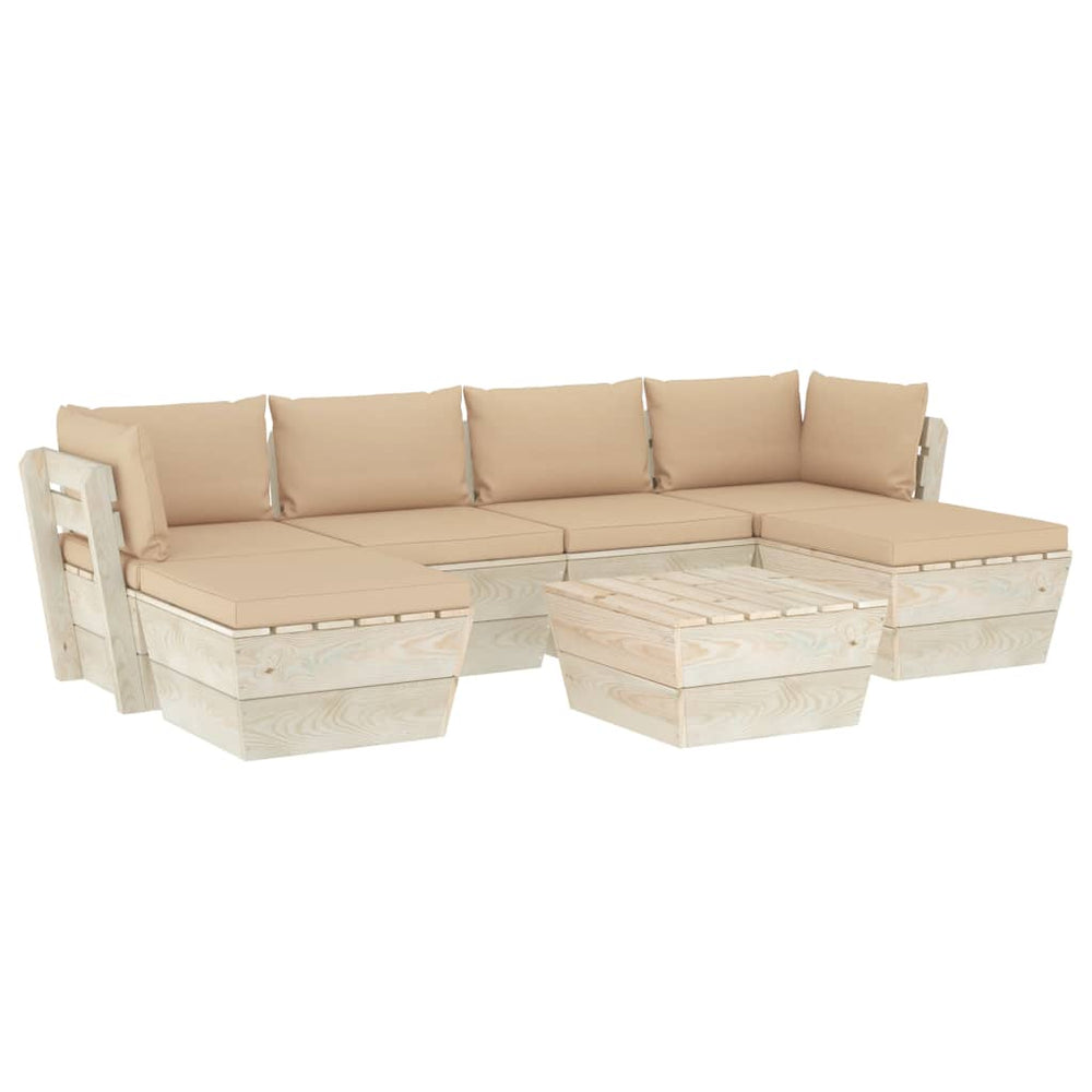 Deze 7-delige pallet tuinset met kussens is een uitstekende keuze om te relaxen en te genieten van het weer, een dutje te doen of te kletsen met familie en vrienden. De houten loungeset, met een tijdloos palletontwerp, geeft je terras, tuin of woonkamer een vleugje rustieke charme.