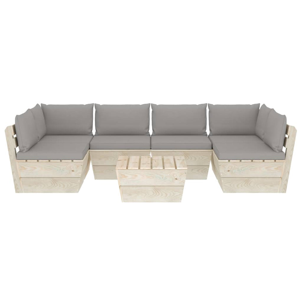 De tuinmeubelset is gemaakt van geïmpregneerd vurenhout waardoor hij duurzaam en stabiel is. Deze set heeft een massieve constructie en vereist weinig onderhoud. Het stevige tafelblad is ideaal om eten en drinken binnen handbereik te houden. Dankzij de 100% polyester bekleding en dikke vulling zijn de palletkussens zacht en zeer comfortabel. Bovendien maakt het modulaire ontwerp het mogelijk om de set in elke gewenste samenstelling te plaatsen.